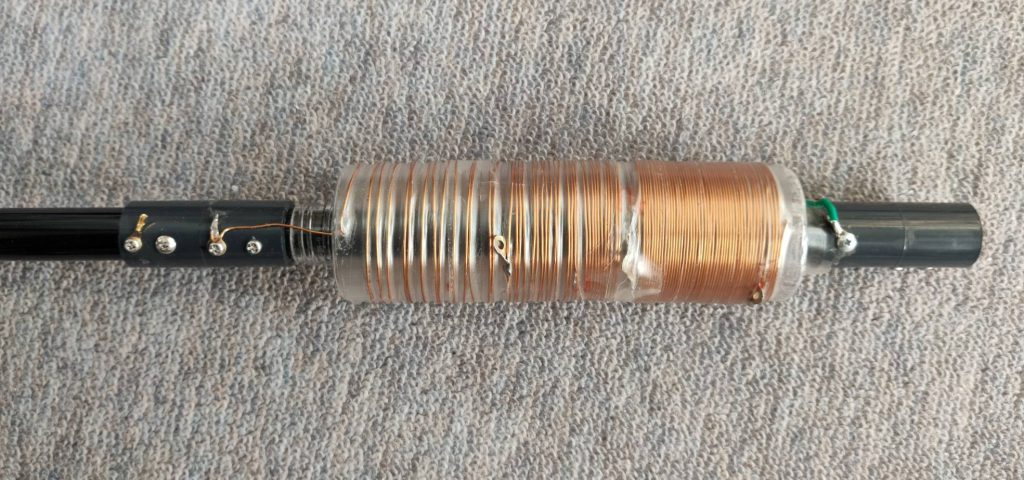 カーボンロッドアンテナにコイル追加by jm1wijに Activator、ALL、antenna、Hunteron 投稿日: 2026年3月19日2026年3月30日 2026年3月19日 先日作成したカーボンロッドアンテナにコイルを追加して、14MHz以外に7MHzと3.5MHzと1.8MHzに出れる様にしました。 詳細は → jm1wij.jp 完成したアンテナをベランダに設置 昨年作成した、5.6mロッドアンテナ用のコイルを流用 カーボンロッド釣竿アンテナにコイルを取付後